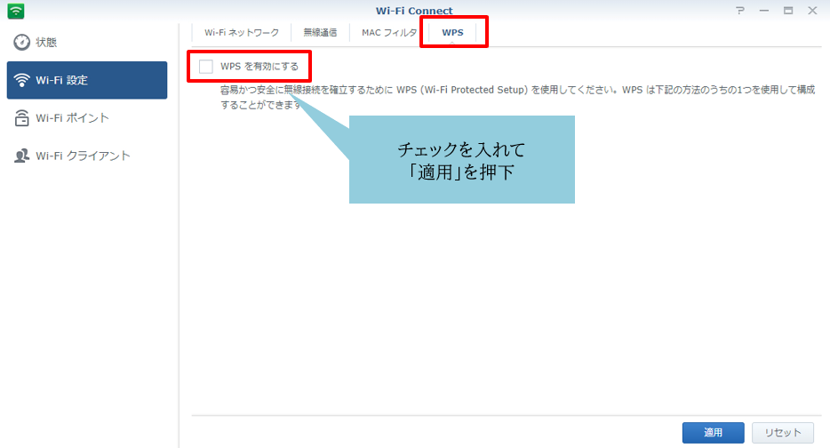 SoWⅡの管理画面にログインしていただき、Wi-Fi Connect → Wi-Fi設定の下記画面にて有効にしていただくか、サポートセンターにご連絡ください